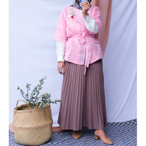 Outer cantik dengan perpaduan silk organza dan aksen flower embroidery menjadikannya terlihat menawan. Apalagi jika ada kemeja polos plus Rok plisket biar ga nganggur cocok bgt dipadankan Minka Outer buat ke pesta/ formal occasions